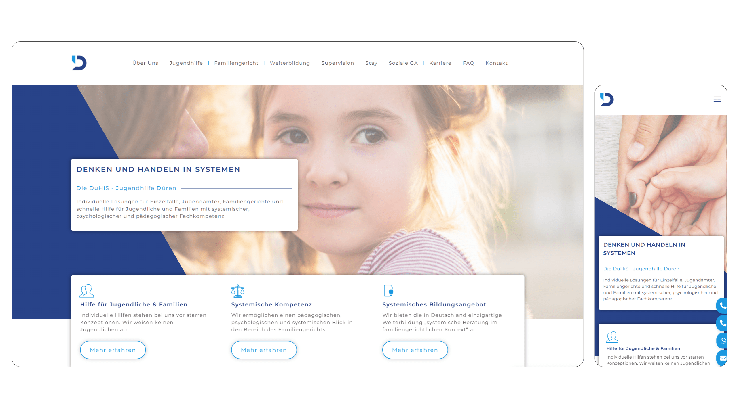 Auch das Branding haben wir maßgeblich beeinflusst und optimiert. Die Social-Media-Präsenz der systemischen Jugendhilfe ist ebenfalls Teil unserer erfolgreichen Zusammenarbeit.