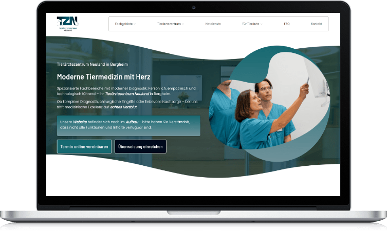 Für das Tierärztezentrum Neuland in Bergheim haben wir eine Website entwickelt, die spezialisierte Tiermedizin klar, nahbar und modern präsentiert.
